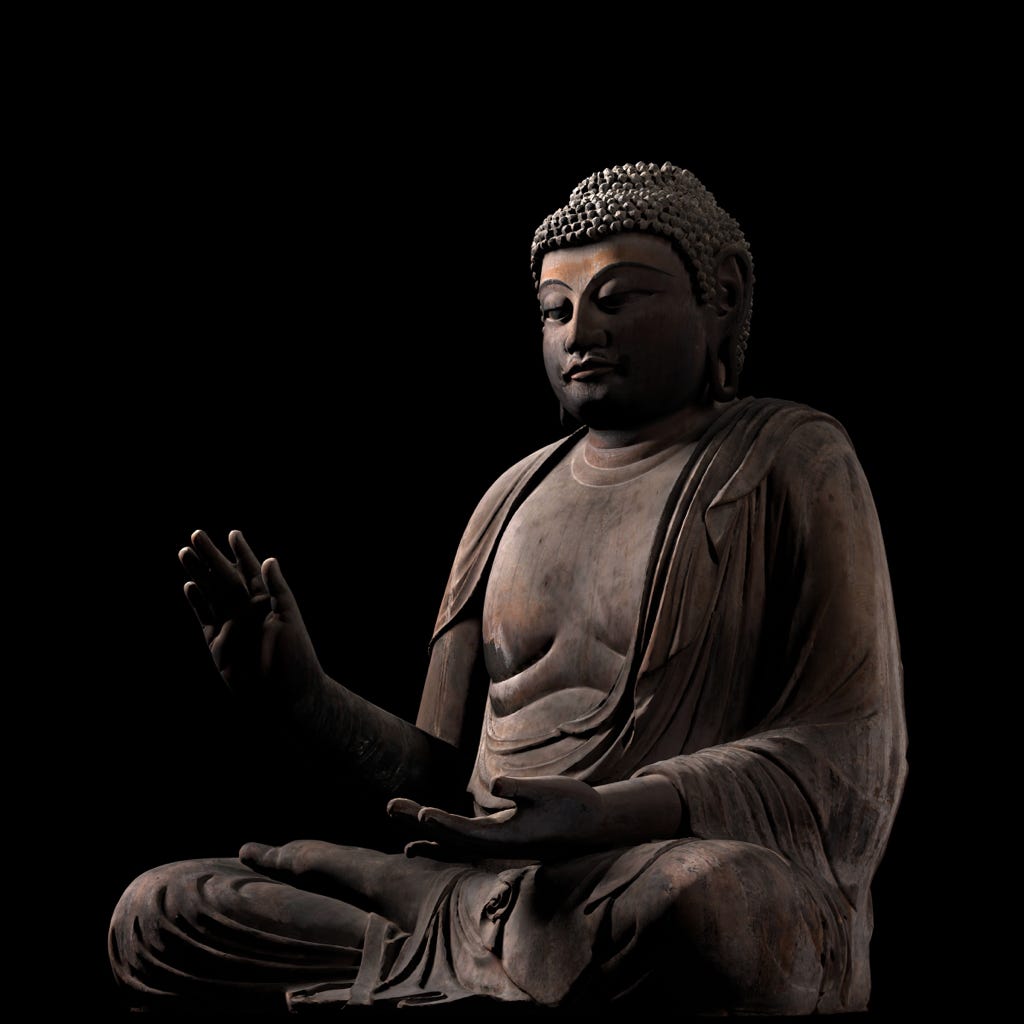本尊である薬師如来坐像は、奈良時代最末期に造立された木彫像であり、その特徴的な姿が注目される。カヤの一木造で、表面は白檀のように見せる素地仕上げである。本体の構造で最も特異な点は、左手先材を除くすべての矧木を縦木で通していることである。屈臀する手の前膊以下の矧木が縦木である例は、神護寺薬師如来像などあるものの、坐像の両脚部矧木までを縦木で通しているのは他に例がない。