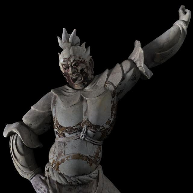 新薬師寺の薬師如来坐像を囲む円形土壇上には、十二神将像が外向きに配置されている。この塑像群は彫像としては日本最古の十二神将像の遺品である。昭和六年(1931)に補修された伝宮毘羅(くびら)像を除き、天平年間(729~749)に造立されたことが伝因達羅像の框座に記された墨書から確認されている。