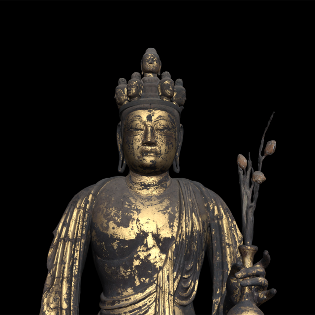 Standing Eleven-headed Kannon, wood-core dry lacquer
